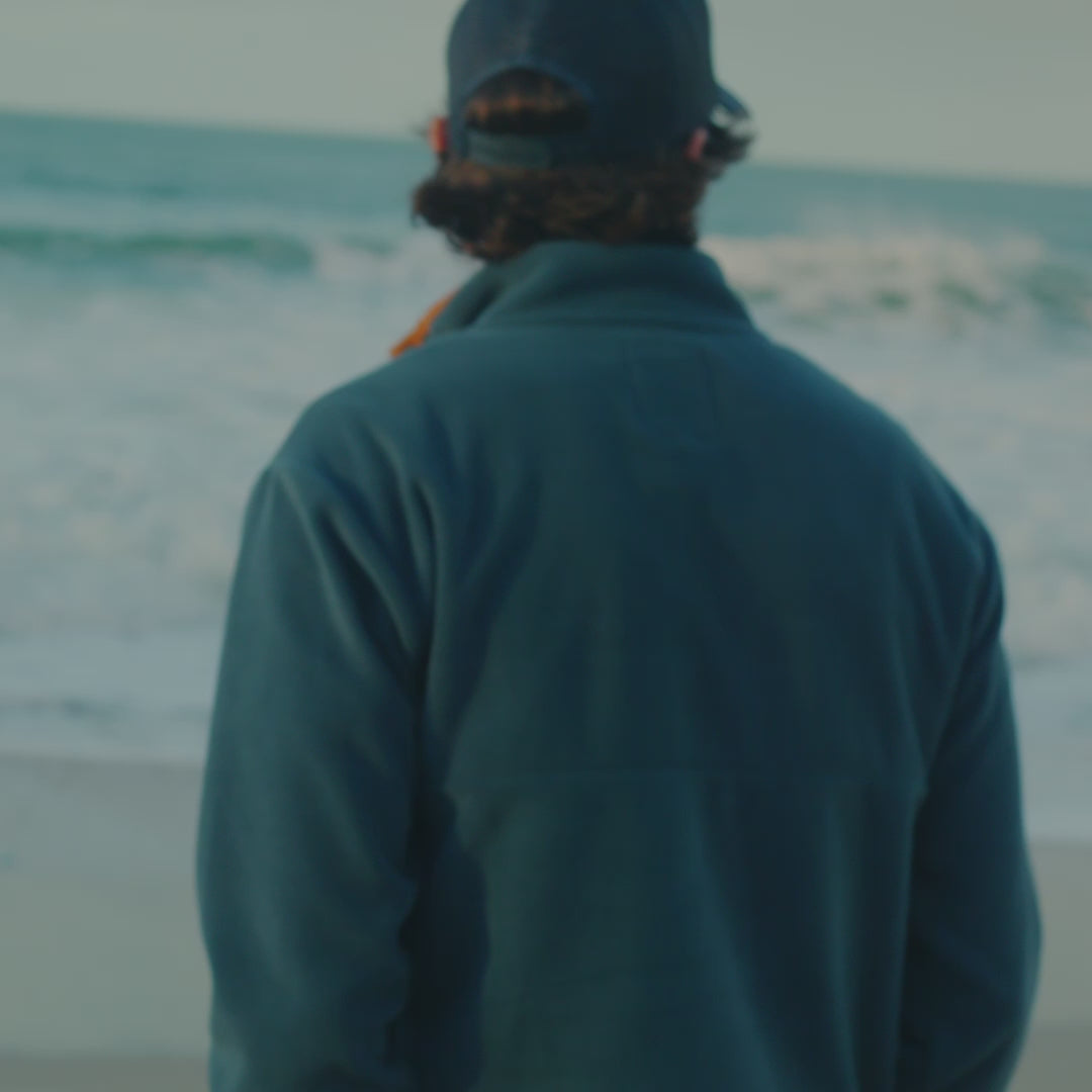Gwenvor is our retro inspired fleece for Cornish Winters. Featuring a mid-weight recycled fleece and high neck, this is the perfect outer layer for windy atlantic conditions. With a deep 1/4 snap opening, you can vent when warm and cosy up with the double lined pockets when cold.